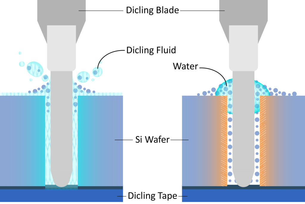 Dicing Fluid, semiconductor lubricants represent the best technology for your wafer dicing needs. Our products are specifically designed to enhance lubrication, prevent galvanic corrosion, dissipate heat and eliminate topside and bottom side chipping in a clean and effective way. Both our chemical and centralized dispensing equipment are specially designed to be environmental friendly, as well as a robust and easy to use technology.